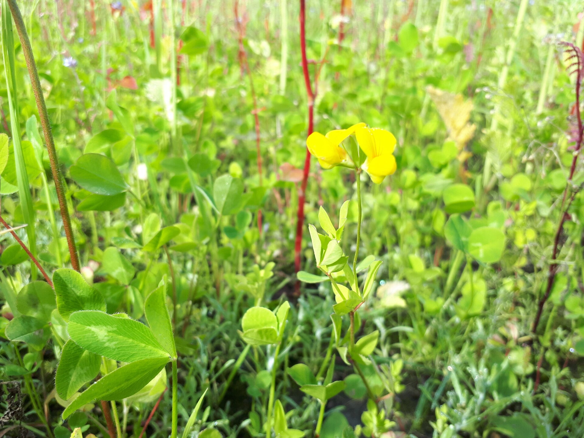 Trodde jag hittat en blålusern nere till höger, vilken borde blomma först andra året. Det visade sej dock vara en vicker efter nogrannare inspektion.